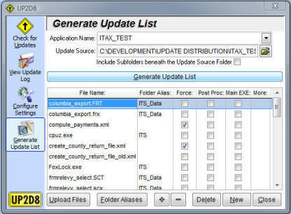 Select the Generate Update List option in UP2D8 to create the Update List.